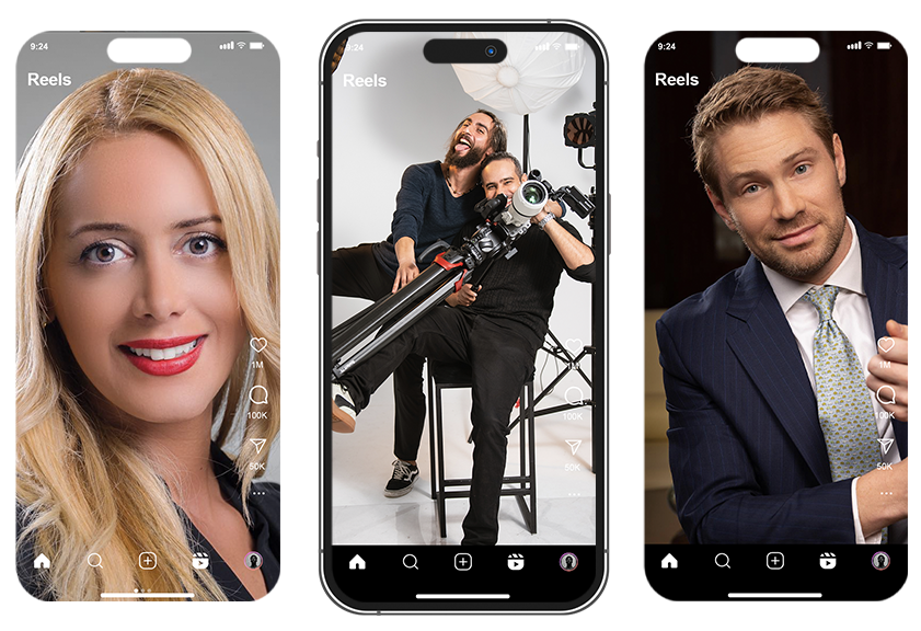 Reels dynamiques tournés en studio avec lumière pro, mise en scène et montage vertical avec sous-titres animés. Idéal pour Instagram, TikTok ou YouTube Shorts.