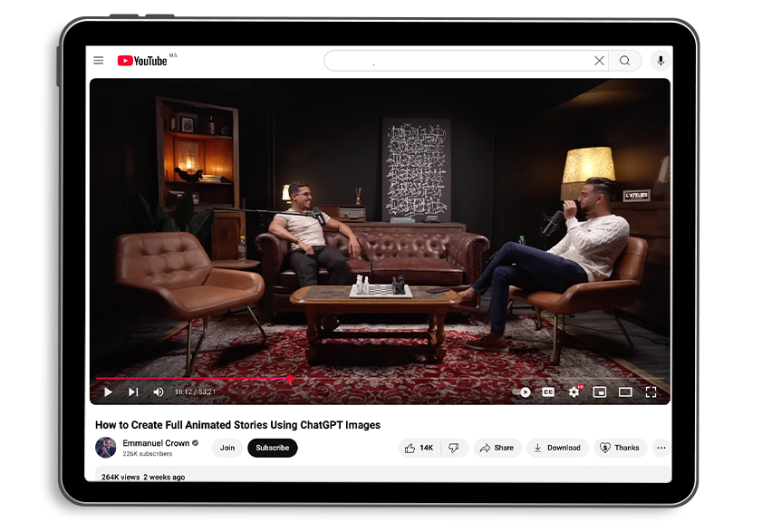Tout ce dont vous avez besoin pour créer du contenu de qualité professionnelle, dans un seul lieu chez Podcasty à Casablanca ou Marrakech.